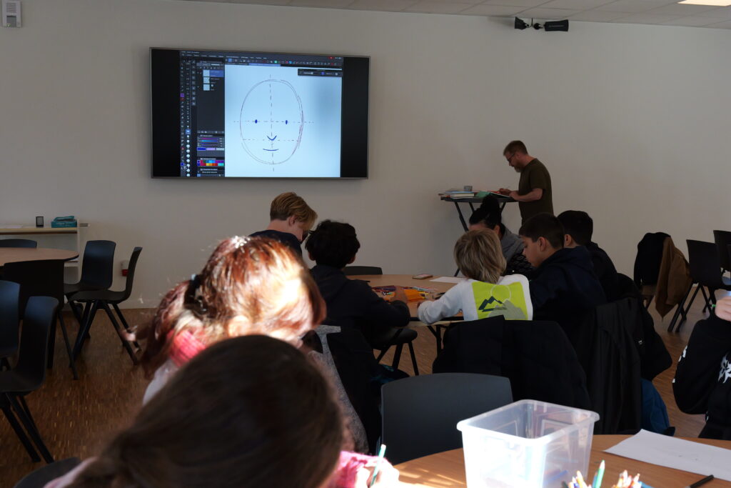 Dans la continuité du lancement, les collégiens ont été accueillis au Sapin vert pour un temps fort le 16 octobre. Ils ont retrouvé Benjamin Strickler pour découvrir son métier, questionner sa pratique, comprendre les étapes d’un album illustré… et, pour certains, visiter le Sapin vert pour la toute première fois.